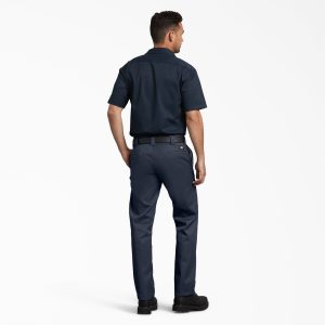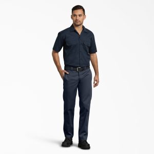 Get comfortable and stay productive even with the toughest of jobs in our Men’s 873 Slim Fit Work Pants. No wonder these are our most popular slim work pants. The material is made of a durable polyester/cotton twill blend that is long-lasting and wrinkle-resistant. Dickies 873 Slim Fit Work Pants have a stain-release finish that prevents stains from permanently setting in. The pants also have a slim fit through the seat and thigh. and a straight leg. letting you move around more easily in them. A 2-piece waistband and signature tunnel belt loops support heavy work belts.