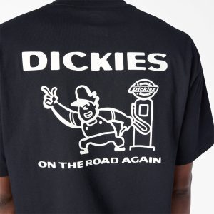Inspired by summer road trips. the Burns men’s t-shirt features a subtle on the road again front graphic and large gas station graphic splashed across the back. The graphic t-shirt has a relaxed fit and comfortable 100% cotton construction.