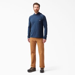 Stay cool for peak performance during warm weather workplace conditions with Dickies Men’s Cooling Performance Sun Shirt. Our Temp-iQ® intelligent advanced cooling technology regulates body temperature to keep you cool and dry. The sun is no match for the UPF 40+ protection embedded into the moisture-wicking fabric. Long raglan sleeves. complete with Dickies Wordmark logo offer enhanced mobility and coverage. featuring anchor thumbholes to keep sleeves perfectly in place. There’s extra protection for your head and neck whenever you need it. with a built-up neckline and three-piece hood. Use the chest pocket with pencil divider when on the job.