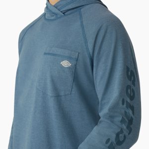 Stay cool for peak performance during warm weather workplace conditions with Dickies Men’s Cooling Performance Sun Shirt. Our Temp-iQ® intelligent advanced cooling technology regulates body temperature to keep you cool and dry. The sun is no match for the UPF 40+ protection embedded into the moisture-wicking fabric. Long raglan sleeves. complete with Dickies Wordmark logo offer enhanced mobility and coverage. featuring anchor thumbholes to keep sleeves perfectly in place. There’s extra protection for your head and neck whenever you need it. with a built-up neckline and three-piece hood. Use the chest pocket with pencil divider when on the job.