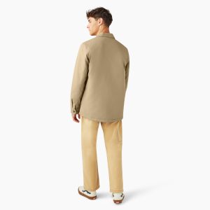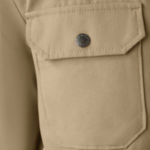 Made from 100% cotton duck canvas. this men’s shirt features our signature heavyweight construction for a classic. long-lasting look. The shirt has a casual relaxed fit. snap button front closure. secure chest pockets. and hidden side pockets. It’s finished with a quilted interior for added style and warmth.