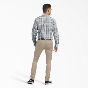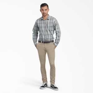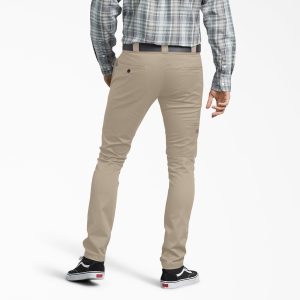 Can a skinny pair of pants be good as work pants? If we’re talking about the Dickies Men’s Skinny Fit Work Pants. then the answer is absolutely yes. With a tailored fit. the FLEX fabric stretches and moves with you. keeping you comfortable on the go. At the same time. the featured belt loops work perfectly for a secure and easy-access tool belt. Additional storage. including a cell phone pocket. gives you more versatile options for hands-free activities. And the stain-release material repels dirt and grime. So you’ll keep looking sharp and clean. even at the toughest worksites.