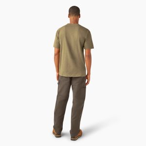 Dickies Men’s Heavyweight Heathered Short Sleeve Pocket T-Shirt is a long-lasting workplace tee. Get the job done thanks to this durable heavyweight heathered cotton/polyester blend that stays comfortable throughout the workday and beyond. Store writing tools in its chest pocket with pencil divider. finished with a Dickies logo. The reinforced neck and shoulder seams are built to last. while the tagless neck label ensures an even more comfortable fit so that you can focus on the task at hand. Wear it alone or as a layer.