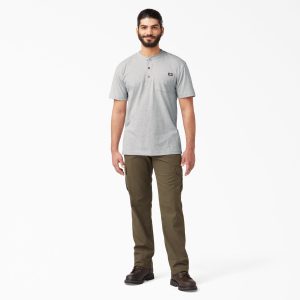 Dickies Men’s Heavyweight Short Sleeve Henley T-Shirt is a classic tee that’s tough enough to handle full days on the job. Enjoy this practical and comfortable style with reinforced. taped seams that won’t unravel. a tagless back label for a non-chafing fit. and a chest pocket with a pencil divider and the classic Dickies logo. It has three buttons at the neck closure to add both style and practicality. Made from heavyweight 100% cotton that’s ultra-durable and soft. this hardworking. relaxed fit t-shirt may quickly become a year-round staple in your work rotation.