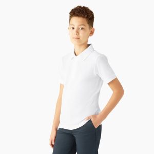 The Kids’ Piqué Short Sleeve Polo Shirt delivers timeless style with the durability you expect from Dickies. This essential children’s polo is made from breathable pique fabric that holds up through school days. play. and everything in between. Designed with a clean collar. button placket. and reinforced seams. it’s a reliable kids’ polo built for movement and made to last. Shop several uniform colors in sizes 4-20. so they can keep that classic Dickies look as they grow.