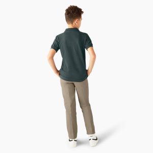 The Kids’ Piqué Short Sleeve Polo Shirt delivers timeless style with the durability you expect from Dickies. This essential children’s polo is made from breathable pique fabric that holds up through school days. play. and everything in between. Designed with a clean collar. button placket. and reinforced seams. it’s a reliable kids’ polo built for movement and made to last. Shop several uniform colors in sizes 4-20. so they can keep that classic Dickies look as they grow.