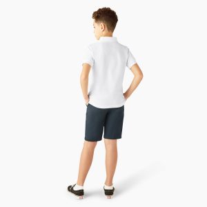 The Kids’ Piqué Short Sleeve Polo Shirt delivers timeless style with the durability you expect from Dickies. This essential children’s polo is made from breathable pique fabric that holds up through school days. play. and everything in between. Designed with a clean collar. button placket. and reinforced seams. it’s a reliable kids’ polo built for movement and made to last. Shop several uniform colors in sizes 4-20. so they can keep that classic Dickies look as they grow.