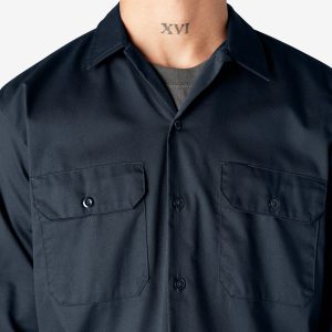 The Dickies Men’s Long Sleeve Work Shirt is one of our classic designs. providing both comfort and style. Made to last. this dependable work shirt. made of durable fabric. has a functional build and non-break melamine buttons. This iconic design features a generous cut through the shoulders and chest that provides freedom of movement. Advanced moisture-wicking technology and an easy-care stain release finish makes this work shirt perfect for both the workplace and for fun after work. The shirt also has two functional chest pockets. including one with a pencil division. doghouse sleeve plackets. and a woven Dickies logo label.