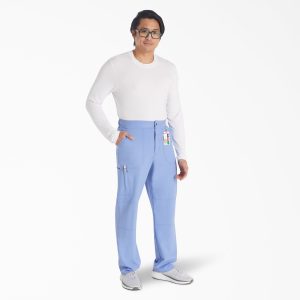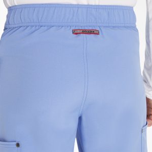 This Men’s fit mid rise pant has an elastic-reinforced waistband with inside logo drawstring for adjustability and security. Pull-on waist with zip fly and logo snap closure. There are four pockets for easy storage: two front slant pockets and two cargo pockets with decorative stitching (right with pen/instrument stitch). Cargo pockets have decorative logo snaps at corners. Decorative knee stitching and decorative stitching on all seams for added styling. Logo locker loop at center back waist for quick hanging.