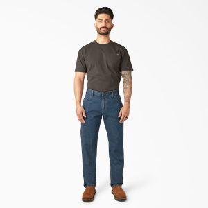 These Men’s Relaxed Fit Carpenter Jeans allow you to carry everything you need at work without looking bulky. Deep back pockets and a side stash for nails and small gadgets hide away all your necessities. while you look pulled together with a smooth front and keystone belt loops that add strength and resist bunching. Finished with reinforced. triple-stitched seams that won’t unravel and a failsafe brass zipper. this hardworking denim style will allow you to tackle even the toughest of jobs. Get the perfect balance with these Relaxed Fit Carpenter Jeans.
