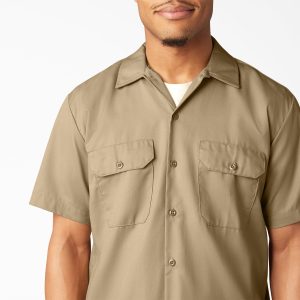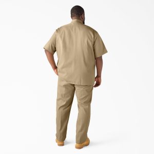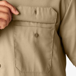 Our Men’s Short Sleeve Work Shirt has been one of our top styles since Dickies started in 1922. There’s a reason this style has stood the test of time. This original work shirt is crafted from our wrinkle-resistant classic twill fabric. with a generous cut through the shoulders and chest that provides freedom of movement. and square hem design for easy tucking. The piece features secure chest pockets with a pencil slot and non-break buttons. The shirt has a moisture-wicking finish to help keep you cool and dry all day long. Wear it buttoned up or over a simple tee.