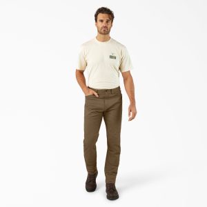 The Tradebuilt collection offers utility performance workwear designed for specialized trades. Our men’s Tradebuilt double knee pants feature a durable. cotton-blend duck canvas with just enough stretch for mobility and extended double knee panels for long-lasting utility. The pants feature a regular fit. tapered leg style. inset carpenter pockets. a secure zippered back pocket. low-profile hammer loop. and Durable Water Repellent finish.