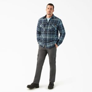 This Men’s Water Repellent Fleece-Lined Flannel Shirt Jacket is the best of both worlds. It looks and wears like a shirt but keeps you warm like a coat. It’s made of yarn dye flannel in 100% cotton. which is treated with Durable Water Repellent (DWR) technology. This jacket is great for working outside. Ensure your hands stay warm in the fleece hand-warmer pockets. and store your essential work gear and even your phone in the deep front pockets. The combination of comfort. design. and durability of this relaxed-fit shirt makes this jacket the perfect layering option while on the job.