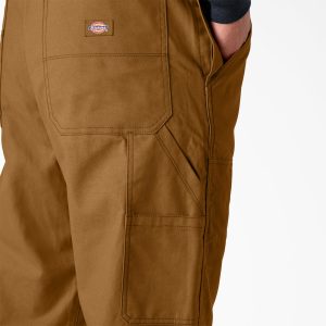 For workwear tough and durable enough for any conditions. step into these Men’s Waxed Canvas Double Front Bib Overalls. Their heritage Dickies classic workwear style features original details boosted by modern technology. Constructed from 100% cotton duck canvas. they can help stand up to splashes with a Durable Water Repellent finish. Rugged wax-coated dirt-release double front panels and wax-coated details on the chest pocket and kick plate keep you protected in all work environments. The comfortable. relaxed fit allows freedom of movement. Long-wearing metal hardware is built to last. There’s easy access to equipment with knife and tool pockets.