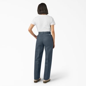 Our Women’s 874® Work Pants have been a classic for decades. The iconic pants are constructed from an ultra-durable twill fabric that wears in comfortably over time and features an easy care stain-release finish and wrinkle-resistant properties. The 874 work pants have a high rise that sits at the natural waist with a sturdy waistband for support. a relaxed fit through the seat and thigh. and a classic straight leg style that tapers slightly at the hem.