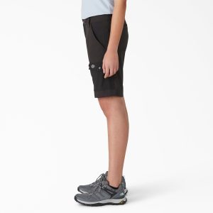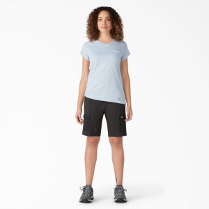 Durable and stylish when the heat is on. Dickies Women’s Cooling Slim Fit Cargo Shorts. 10 are a great work companion. Our slim fit style. crafted with bi-stretch fabric. offers 360° freedom of movement. Our advanced Temp-iQ® intelligent cooling technology adapts to your core body temperature to keep you cool when things heat up. with a moisture-wicking finish that combats sweat so you stay dry. The shorts feature plenty of secure storage with Durable Water Repellent abrasion-resistant pockets. Our reflective Dickies logo offers added visibility.