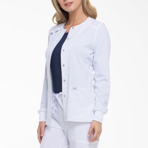 Dickies’ Women’s Snap Front Warm-up Jacket should win best in class for its versatility and durability. The polyester/spandex fabrication keeps it tough and lets you move however you need to move throughout the day. From front office to the operation room. this warm-up jacket will keep you warm in any situation. Two patch pockets and a pen slot keep your necessities nearby so you’re ready for anything. while the utility twill tape keeps it reinforced. Imported.