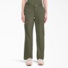 A Modern Classic fit. mid rise. moderate flare leg pant features an adjustable drawstring with elastic at the back waist and Dickies logo twill tape on the inside back waistband. Also featured are front scoop pockets. a back pocket. cargo pockets with a stretch Red knit interior pocket (White knit pocket on White) and side vents.