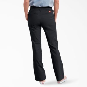 Dickies’ Women’s FLEX Slim Fit Bootcut Pants move along with you thanks to the breathable stretch twill fabric that feels extra soft and offers mobility all day long. These pants feature a contoured waistband with stretch for comfort and coverage. giving you the ability to bend. twist and move without ever worrying about comfort or gaping in the back. Store your gear in the front or back pockets. and feel at your best while you get the job done. Their flattering fit helps you look great at your jobsite.