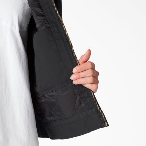 When women find a product with good qualities they can trust. they stay loyal to it. That’s how the Dickies Women’s Insulated Eisenhower Jacket has remained a trusted style by women for over 70 years. Offering modern functionality while maintaining a classic silhouette. this Dickies staple is durable yet stylish. Featuring a water-resistant exterior with a polyurethane coating. its cotton/poly fabrication helps you withstand the elements. Simple and easy. that’s how you stay warm and cozy.
