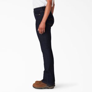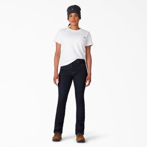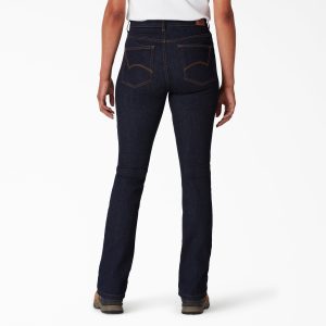 Embrace your ideal fit in a durable denim that will stand up to your dynamic workday in Dickies Women’s Perfect Shape High Waist Bootcut Jeans. Designed with Cone’s patented S Gene®+ dual core stretch denim. your perfect shape will be achieved through a wide range of stretch levels and strength. as well as exceptional growth and recovery. This soft. performance proven bootcut denim won’t stretch out and provides core support through a flex tummy panel that slims and contours your shape. Plus. Perfect Shape Denim raise the bar on feel-good workwear as they are constructed from 100% recycled REPREVE® polyester. helping preserve precious natural resources. The high waist design provides all day on the job comfort. while never falling short on strength. The reinforced double needle stitching makes these durable work jeans a go-to for every task you need to tackle. You’ll gain long-lasting wear and tear in this abrasion tested denim; where fit. function and feel combine to create effortless perfection.
