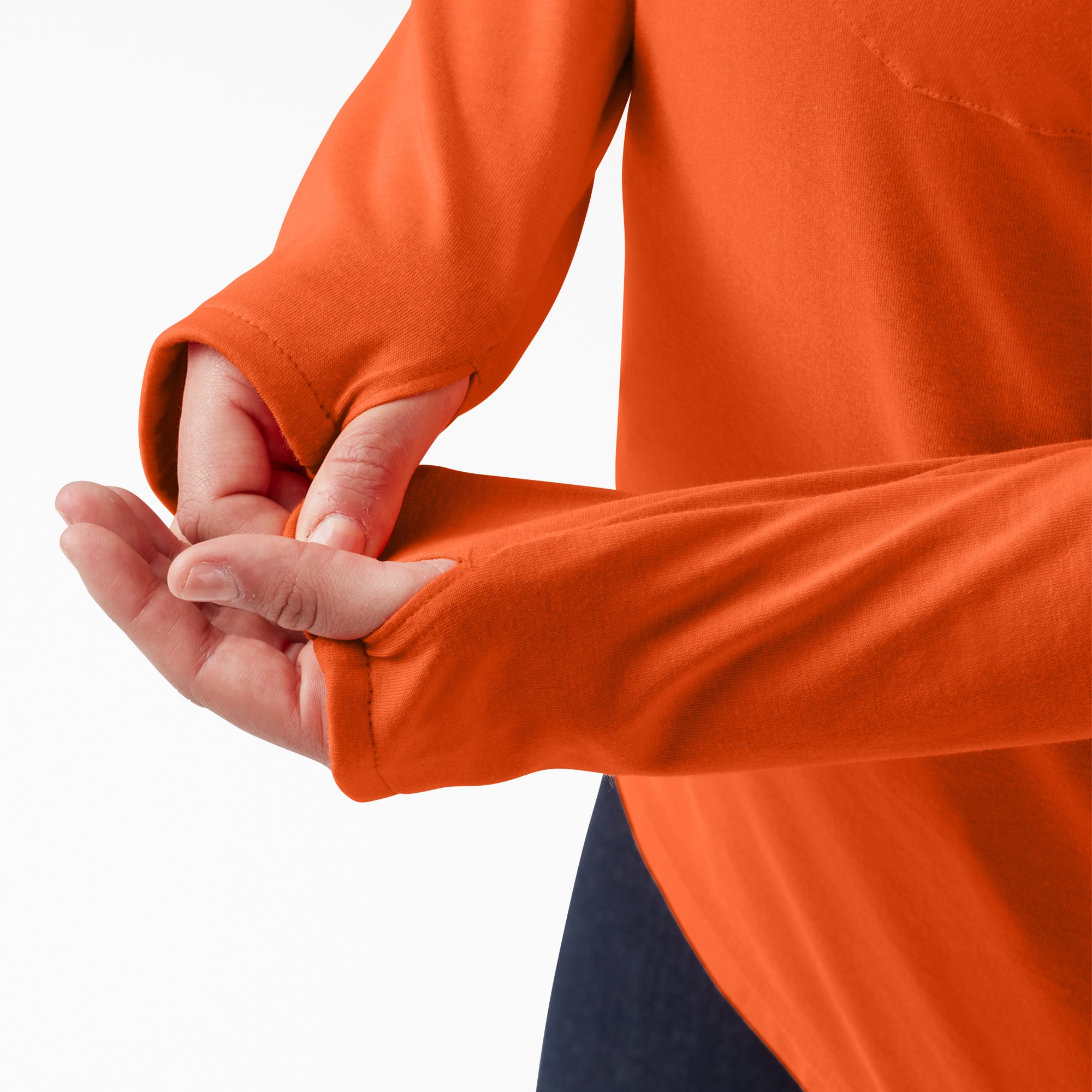 Stay cool for peak performance when heat strikes with this Women’s Plus Cooling Performance Sun Shirt. Our Temp-iQ® intelligent advanced cooling technology wicks away moisture to keep you cool and dry in the sun. UV rays are no match for the UPF 40+ protection in our super-cozy cotton/polyester blend fabric. Anchor thumbholes keep the long sleeves perfectly in place. With a built-up neckline and three-piece hood. there’s extra protection for your head and neck whenever you need it.
