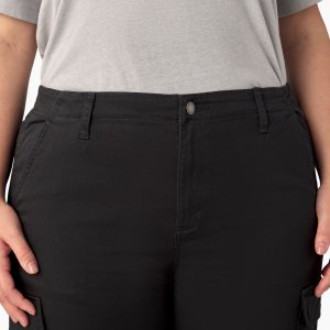 The Dickies Women’s Plus High Rise Fit Cargo Jogger Pants have a proper jogger fit. tapering at the ankle. along with plenty of practical pocketing. Elastic along the back waist provides a comfortable custom fit for easy all-day wearability and straightforward styling that works all year round. This simple style has a tack button closure and dual front slash pockets. The high-rise. flat-front cargo pants also feature rear patch pockets and functional dual-side cargo pockets. These pants are good for both the workplace and the weekend.