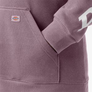 Dickies’ Women’s Plus Water Repellent Sleeve Logo Hoodie is made of fleece. so it feels cozy and comfortable. Yet it’s as strong and durable as you. This plus size hoodie features the same design as our regular women’s hoodie. Double-needle stitching and the Durable Water Repellent (DWR) finish add strength and protection on wet days. The crossover neckline. three-piece adjustable hood. and rib-knit waist and cuffs add strength. durability. and comfort. even in rough weather conditions. Use the front kangaroo pockets to store small work essentials–or just to keep your hands warm. The Dickies Wordmark graphic logo adds style.
