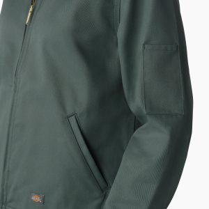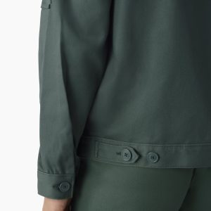 From tradespeople to creatives alike. this Women’s Unlined Eisenhower Jacket proves time and again its trustworthiness when it comes to comfort. durability. and versatility. The Eisenhower jacket was part of the original Dickies work uniform. and it has remained popular over 70 years later. Its quality craftsmanship keeps its iconic status in workwear secure. The adjustable waist tabs. heavy-duty brass zipper. slash-front pockets. and sleeve pocket. make this a stylish yet practical choice for your workday.