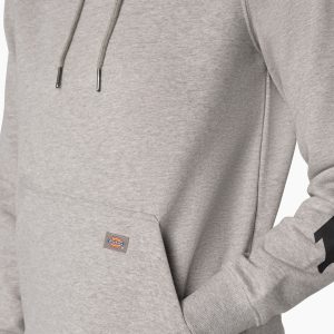 Dickies’ Women’s Water Repellent Sleeve Logo Hoodie is constructed from soft fleece and has a relaxed fit. so it feels cozy and comfortable. Yet it’s as strong and long-lasting as you. Double-needle stitching and the Durable Water Repellent (DWR) finish add strength and protection. so you can wear this hoodie in wet conditions. The crossover neckline. three-piece adjustable hood. and rib-knit waist and cuffs add strength and durability. even in rough weather conditions. Use the front kangaroo pockets to store small work essentials–or just to keep your hands warm. The Dickies Wordmark graphic logo on the left sleeve adds a touch of style.