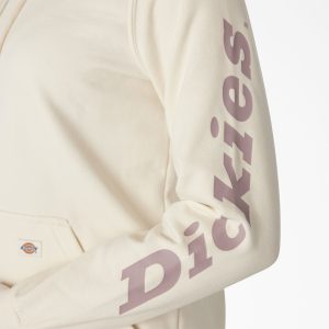 Dickies’ Women’s Water Repellent Sleeve Logo Hoodie is constructed from soft fleece and has a relaxed fit. so it feels cozy and comfortable. Yet it’s as strong and long-lasting as you. Double-needle stitching and the Durable Water Repellent (DWR) finish add strength and protection. so you can wear this hoodie in wet conditions. The crossover neckline. three-piece adjustable hood. and rib-knit waist and cuffs add strength and durability. even in rough weather conditions. Use the front kangaroo pockets to store small work essentials–or just to keep your hands warm. The Dickies Wordmark graphic logo on the left sleeve adds a touch of style.